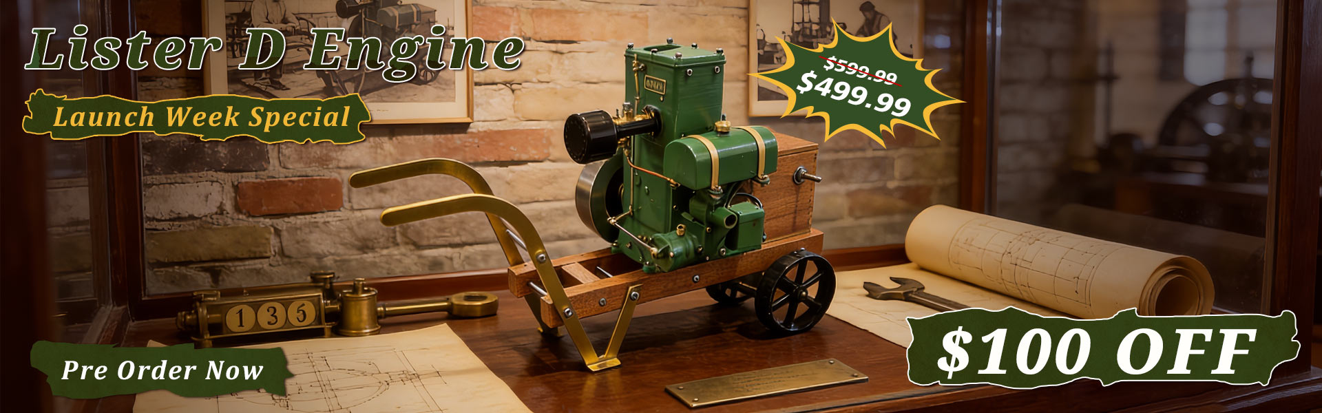 RETROL & OKMO L-D Miniature Single-Cylinder 4-Stroke Stationary Gasoline Engine Model 100th Anniversary Edition [Prototype: British Lister D-ty...