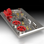 The RETROL team has spent 4 months designing and developing this new Hit & Miss engine model, designated as "HM-01". This hit and miss engine adopts carefully selected high-quality materials and exquisite craftsmanship to assure the engine's reliability and durability. The design features a transparent, adjustable flow main oil cup, a new carburettor and a reverberating exhaust pipe. The two large flywheels are well weighted, with a spring loaded ball and split wide face pulley, making the engine very practical for power output. A special design with a rarely seen "fast and slow gear change" allows the engine to be switched between super slow speed and high speed for power output. This makes the engine more playable and the player more operational. Product technology: the whole machine Ferrari red paint using electrophoresis surface treatment process, the main components (body main body, flywheel, connecting rod, etc.) are made of stainless steel 304 casting, all assembly surface using CNC finishing, high carbon steel hardened one-piece crankshaft. This makes it not only a playable engine model, but also a highly collectible mechanical artwork.