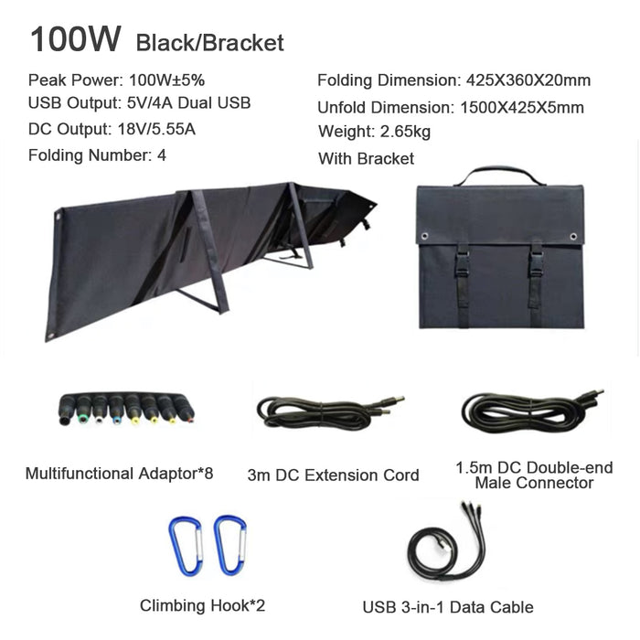 100 W faltbares Solarpanel-Ladegerät-Set für Smartphone-Laptop
