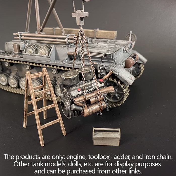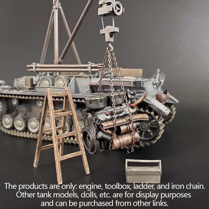 War Park WS039, 1/30, Tiger-Panzer-V-Motormodell + Leiter + Werkzeugkasten + Eisenkette, Mini-Ornament