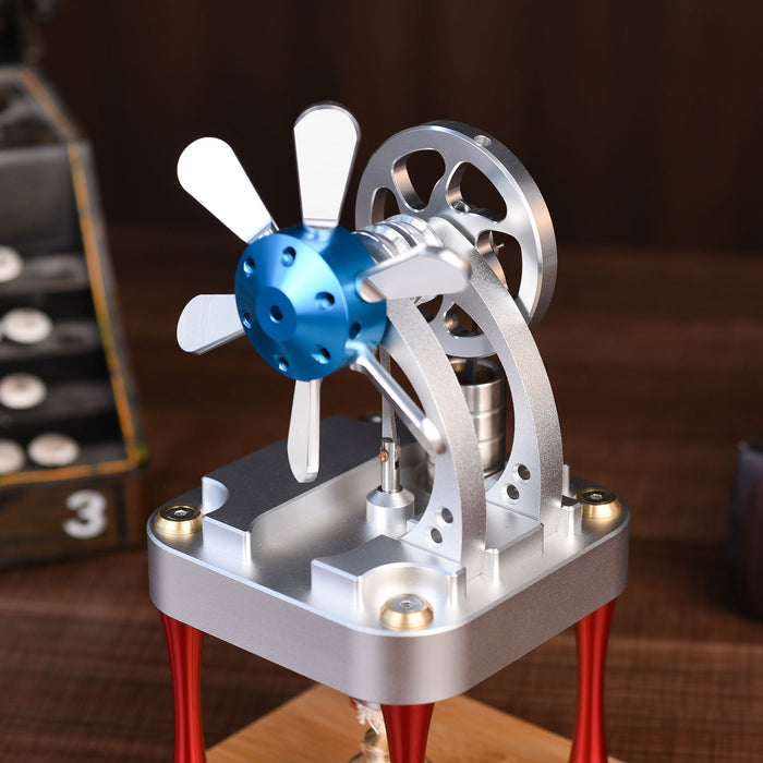 .Das Stirlingmotormodell verfügt über ein Schwungrad- und Lüfterdesign aus Aluminiumlegierung, Kühlung durch Lüfter, hohe Geschwindigkeit und stabilen Betrieb. Der Hauptkörper und die Halterung bestehen aus einer Aluminiumlegierung und die Oberfläche ist eloxiert, was einen reichen metallischen Glanz verleiht. Mit natürlicher Bambusbasis, sowohl Schönheit als auch Textur, einzigartige Sammlung von Kunsthandwerk.