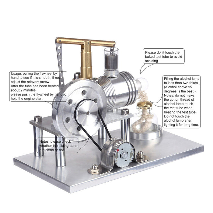 Stirlingmotor-Set, Heißluft-Stirlingmotor, Stromgenerator mit bunter LED