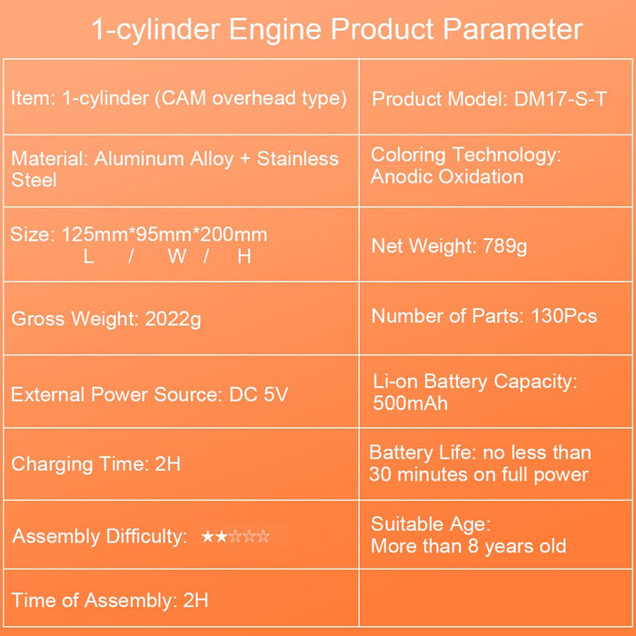 This single cylinder engine is designed based on internal combustion engine, but work with electric motor instead of gasoline. The engine comes with kit ( more than 130pcs ) with a metal box. People have to assemble the part. The whole process is close to the professional assembly line process. You can learn how engine works clearly. Most of our customer are from school or Training institution or family.