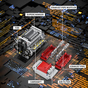 MOC-171732 Crossplane V8 Engine with Supercharger & removable Cover Building Blocks Set (1054PCS/Dynamic Version)