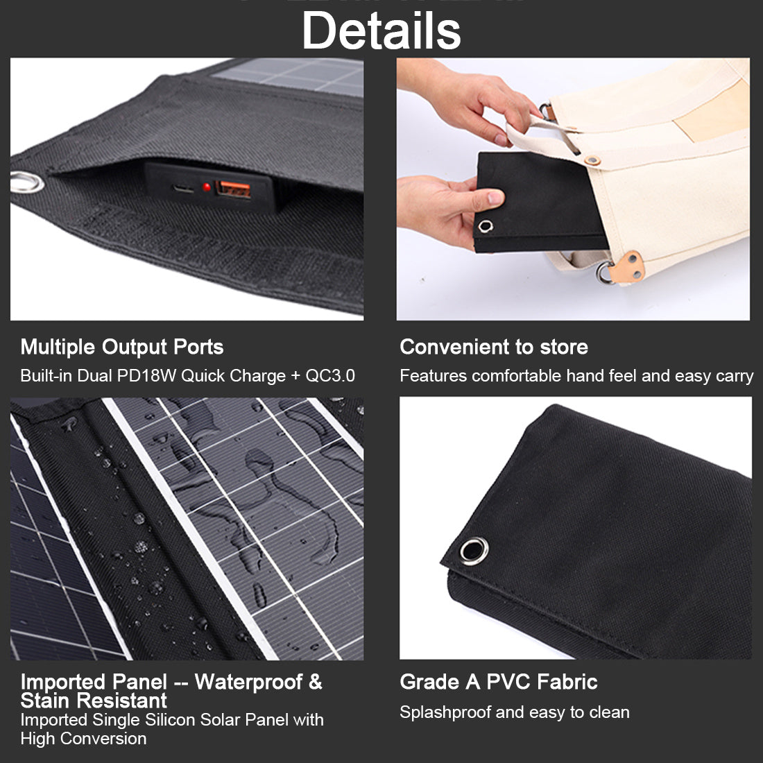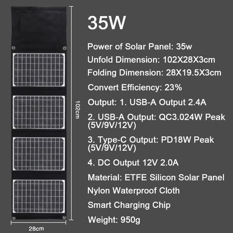35W Foldable Solar Panel Charger Kit for Smartphone Laptop