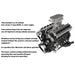 V12 engine with a double overhead camshaft valvetrain, showcasing 48 valves and meticulous attention to scale and appearance.Precision-manufactured using all-aluminum CNC for a realistic shape and integrated exhaust manifold.
