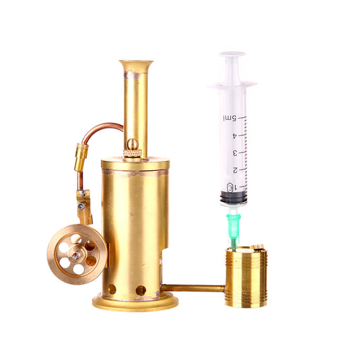 4. EASY OPERATION: Add water into the boiler, then add liquid fuel alcohol. Ignite it, after heating for a few seconds, push the steam engine's flywheel by hand to give it a boost.